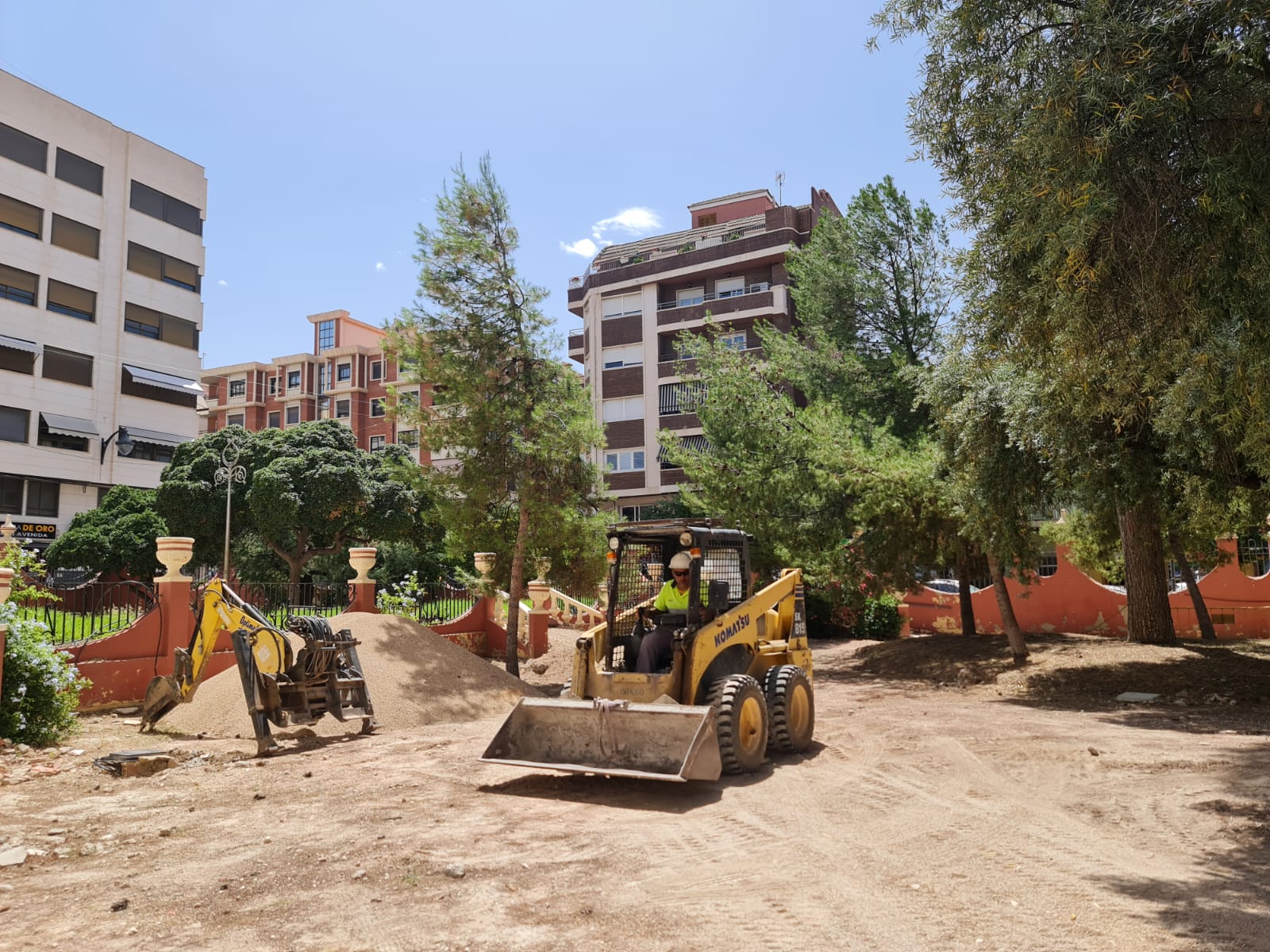 La empresa adjudicataria de los trabajos lleva varios días acondicionando y preparando el terreno para llevar a cabo todas las tareas de remodelación del Jardín de la Música y que se convierta de nuevo en un lugar de ocio y esparcimiento para todos los vecinos y vecinas de Elda.