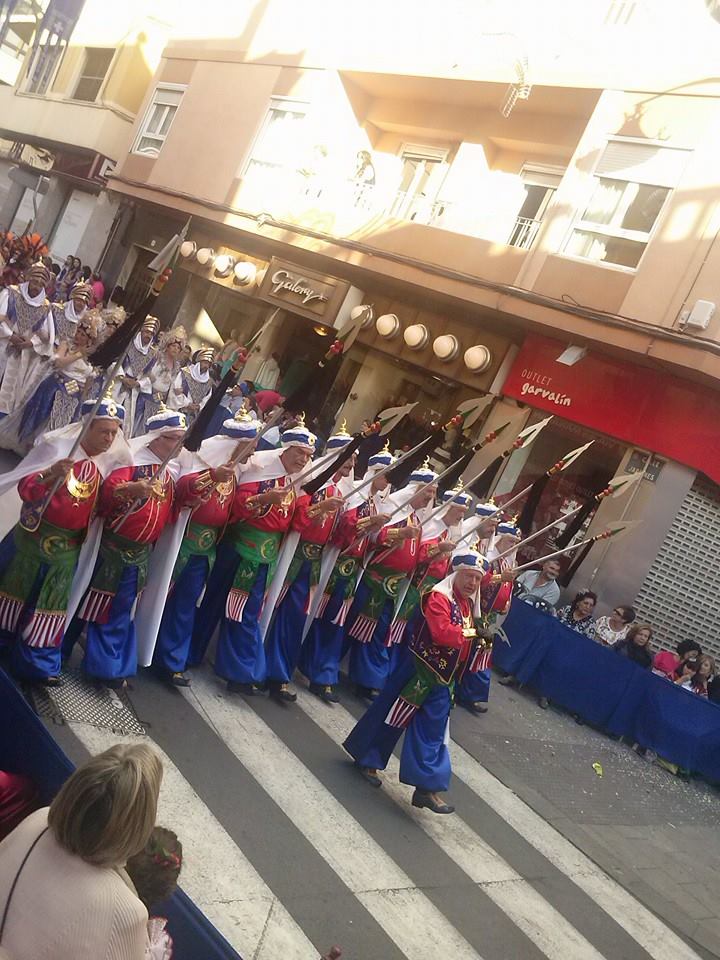 El tiempo respetó el comienzo de la Majestuosa Entrada Mora y el boato del Bando Marroquí. A las 18:00 H. las calles de Elda se vistieron con un gran desfile participando en él, todas las comparsas precedidas por el Embajador Moro.