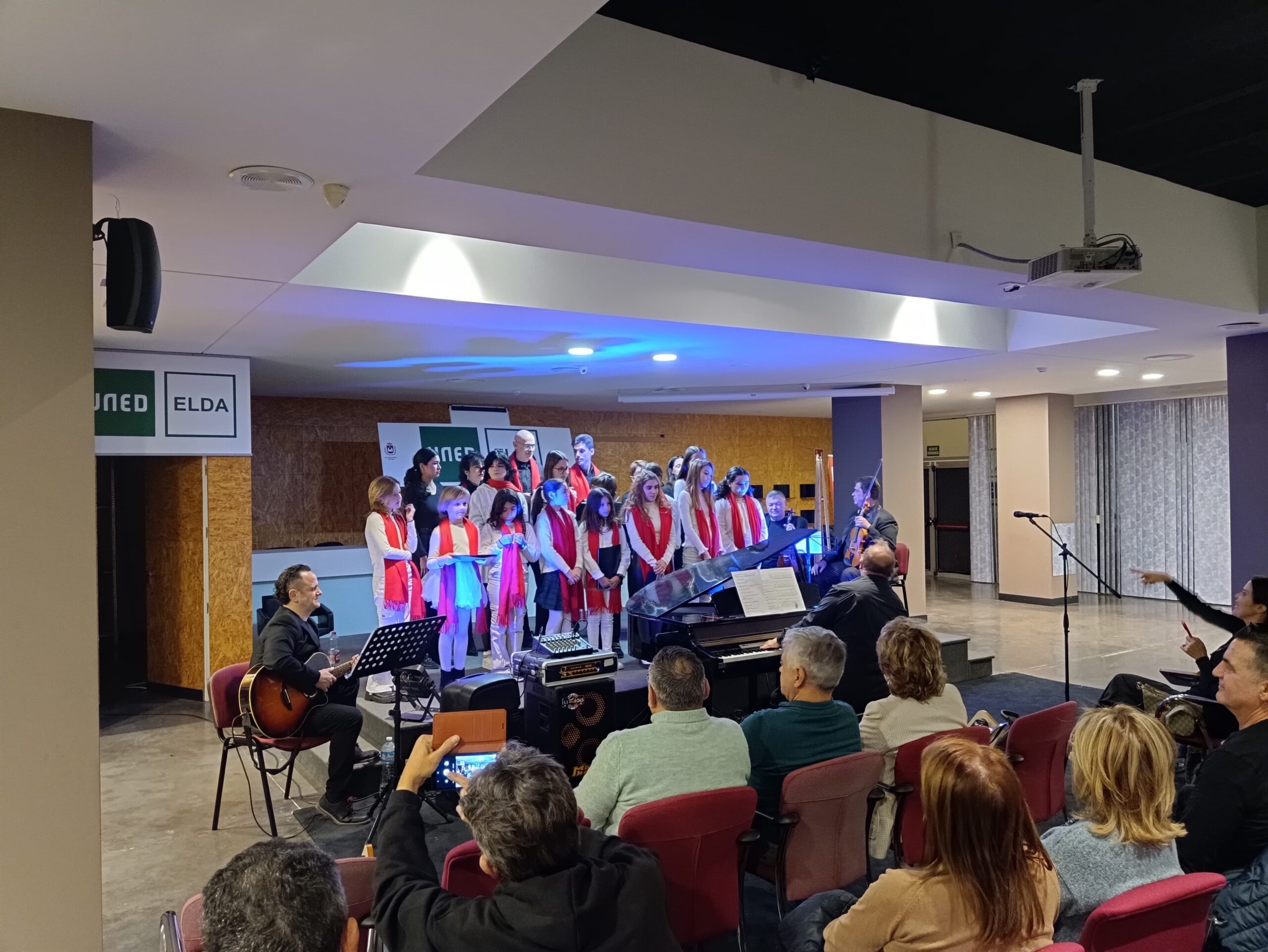 22 de diciembre de 2023.- El salón de actos del Museo del Calzado acogió ayer el Concierto de Navidad del Coro y Orquesta de la UNED de Elche que ha alcanzado su cuarta edición. Con este concierto se pone el broche final al periodo de clases y actividades culturales del año 2023 de la Sede de la UNED de Elda.