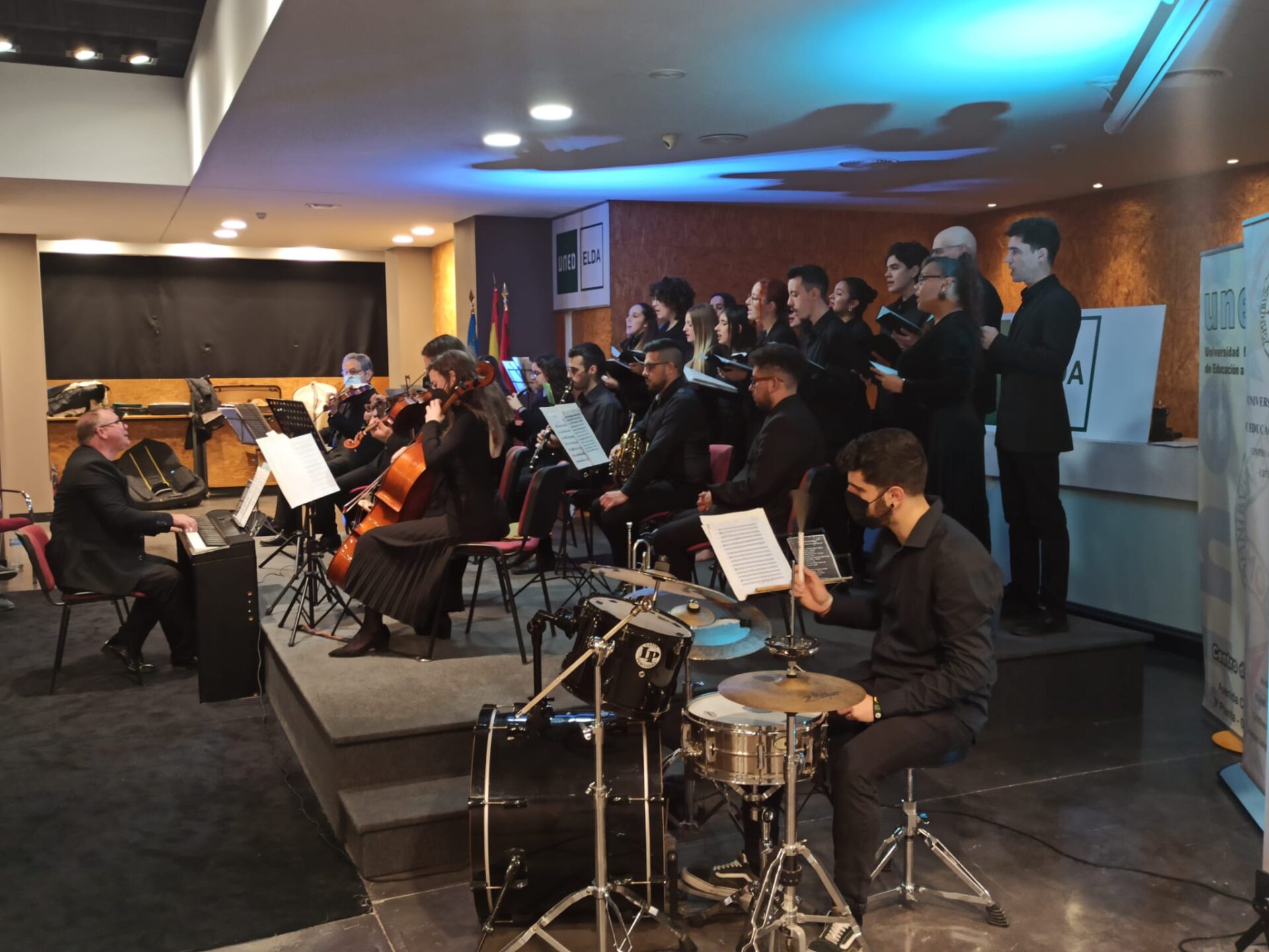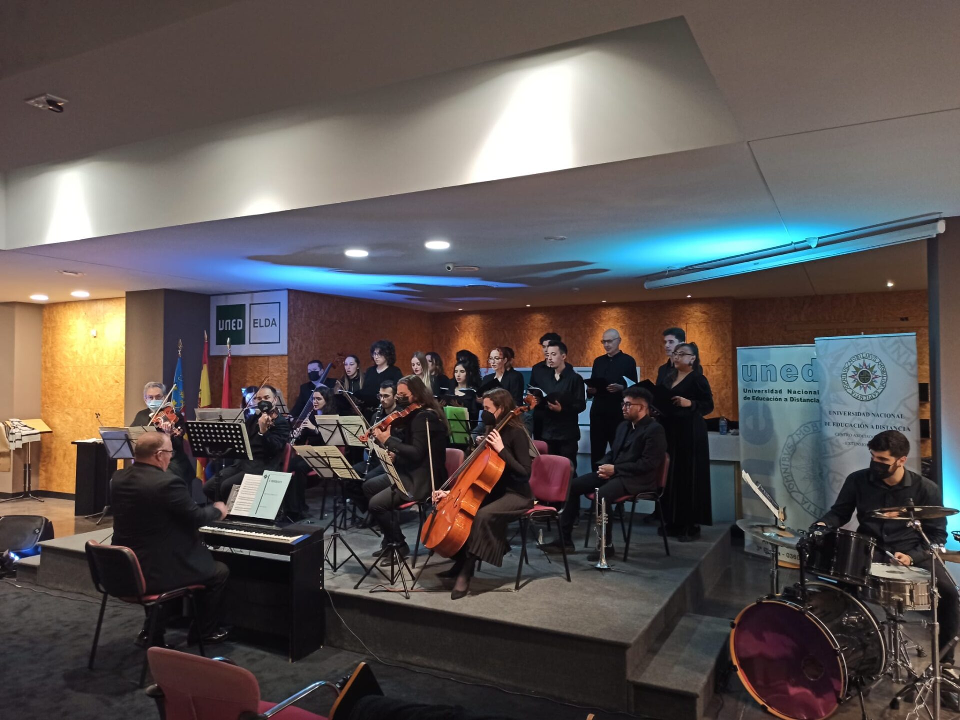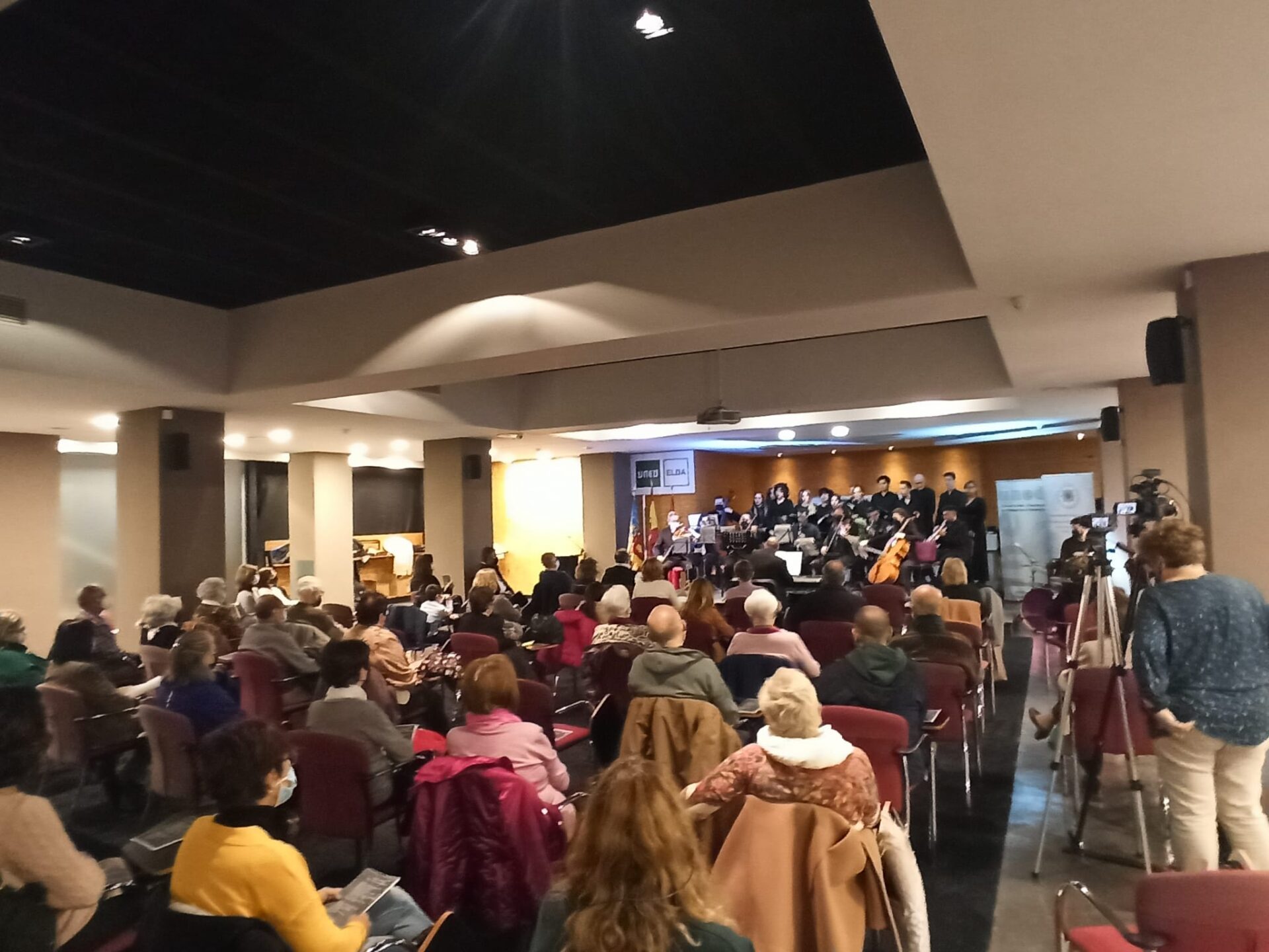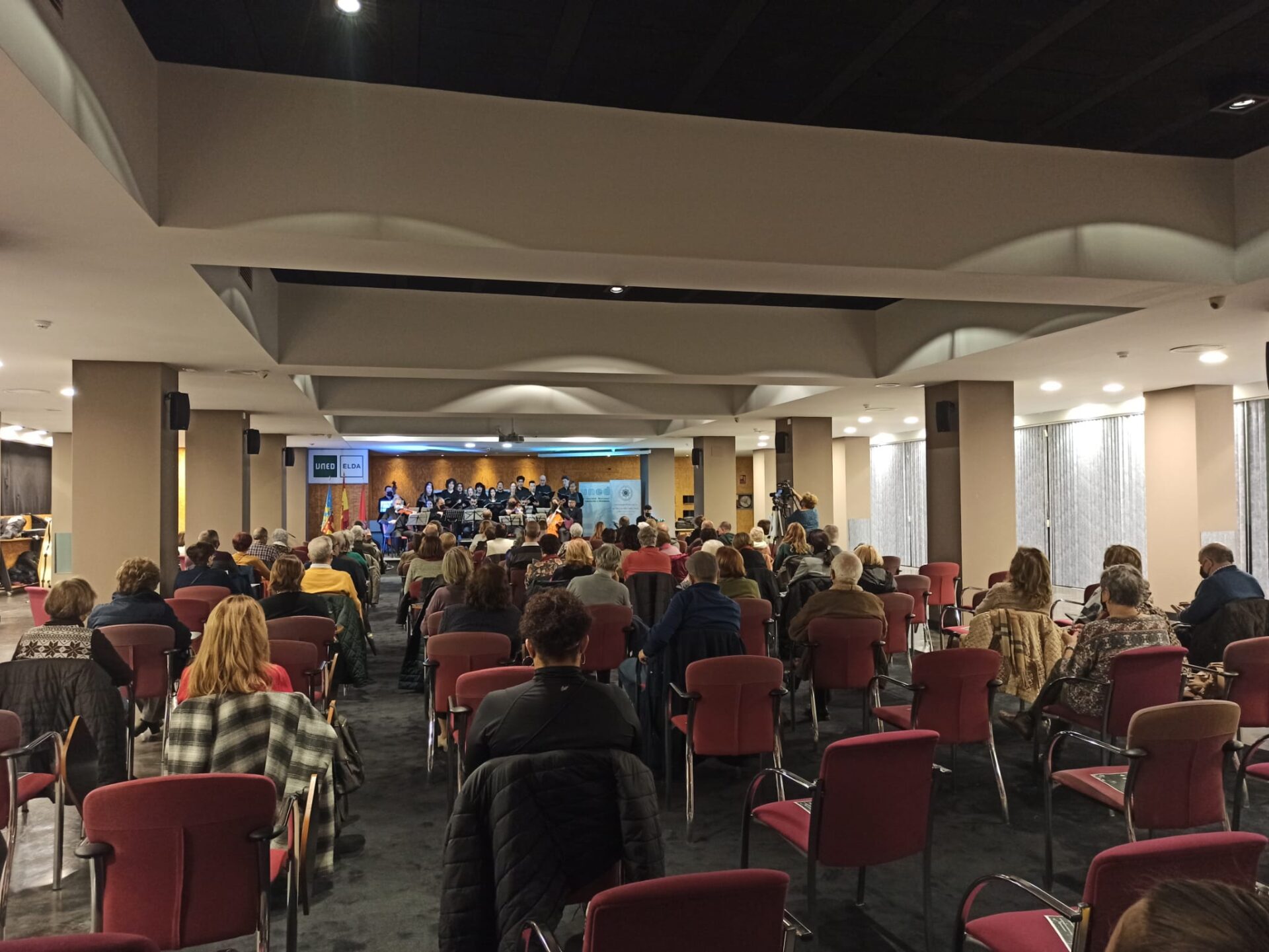 Este martes por la noche, la UNED de Elda ha celebrado su primer concierto de Navidad. Se notaba en el ambiente que había muchas ganas de disfrutar un rato de la música, con el permiso de la pandemia y guardando todas las medidas sanitarias que un acto con tanta asistencia precisa.