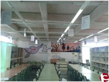 Luis Martínez y Penélope Sánchez , alumnos de prácticas de TASOC , han decorado la biblioteca del centro con varios murales ambientados en pasajes literarios conocidos por todos( Don Quijote , Moby Dick y el Principito ) , así mismo , han suspendido en el aire los 17 escritores españoles más importantes de nuestra literatura con sus fotos y biografía, también cabe destacar el reloj que preside la misma con fragmentos de obras maestras de la literatura, por último se colocó la paloma de la Paz donde tanto alumnos, profesores y personal administrativo del centro están representados por sus fotografías que forman un enorme collage.