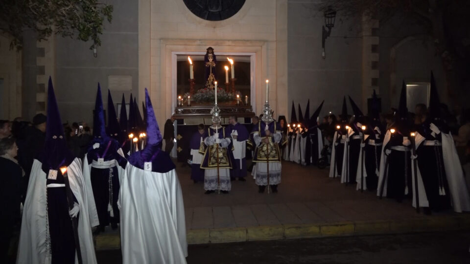 A las 20:15 horas, el redoble de tambores y el sonido de las cornetas rompieron el silencio de la plaza, marcando el inicio del acto. Poco después, a las 20:30, se celebró una oración cargada de recogimiento y emoción. A las 21:00 horas, las puertas del templo se abrieron y dio comienzo la procesión.