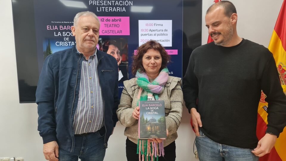 El Teatro Castelar acogerá el próximo viernes, a partir de las 18.00 horas, el acto de presentación de ‘La soga de cristal’, la nueva novela de la escritora eldense Elia Barceló. El acto comenzará a esa hora con la firma de libros en el vestíbulo del teatro y continuará a las 20.00 horas sobre el escenario del coliseo cultural, donde la periodista eldense Pepa Blanes conducirá la presentación de la nueva obra de Elia Barceló.