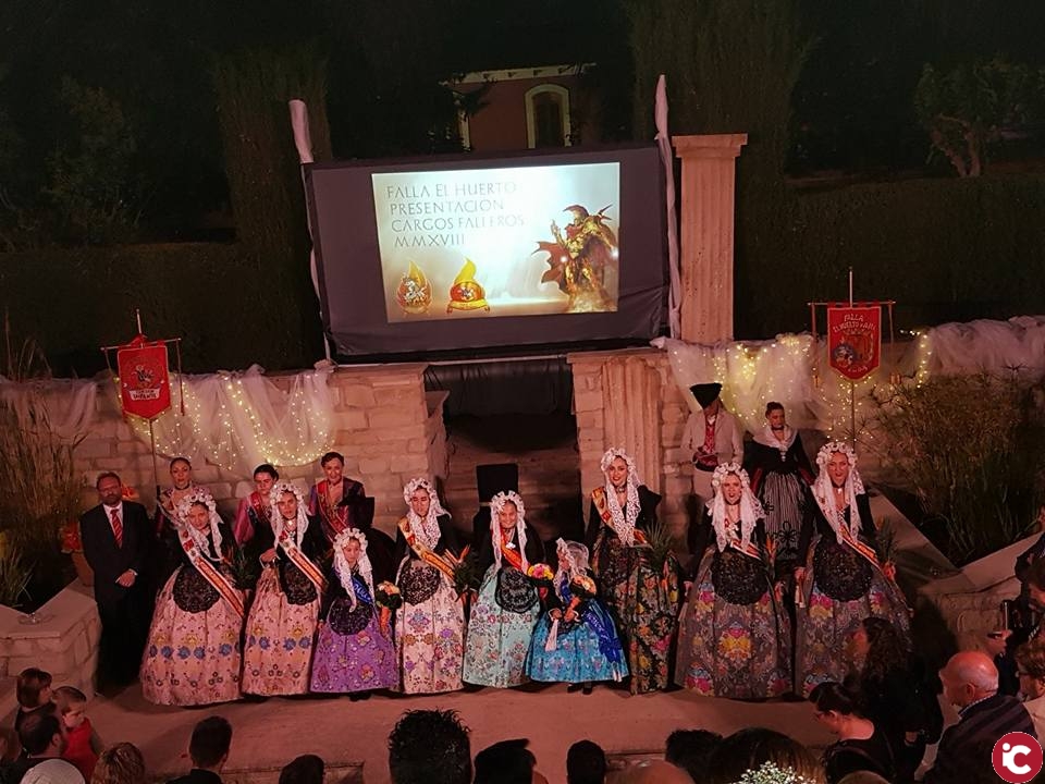 El pasado sábado 12 de mayo la Falla El Huerto y Adyacentes de Elda realizó su presentación de Cargos Falleros para el ejercicio 2018 en la Casa Colorá de Elda a las 21:30 h. A pesar de comenzar con algo de retraso debido a las inclemencias del tiempo, el acto se celebró según lo previsto. Al mismo, acudieron como invitadas las comisiones falleras de la ciudad, su hoguera hermana Carolinas Altas de Alicante, la Mayordomía de San Crispín y San Crispiniano, y las Falleras Mayores de Elda acompañadas por sus Damas de Honor y miembros de Junta Central de Fallas de Elda, fue el Concejal de Participación Ciudadana Don Eduardo Vicente Navarro el que actuó como representante del consistorio.