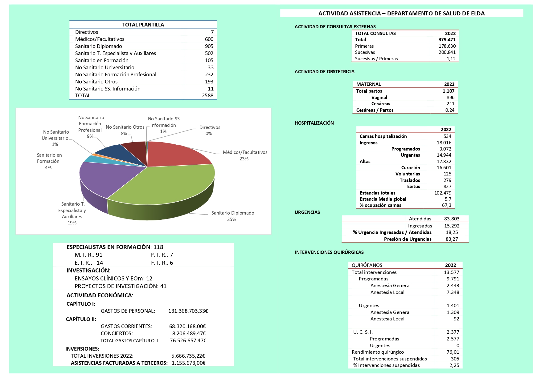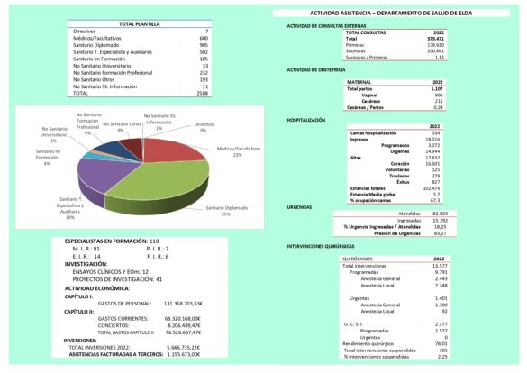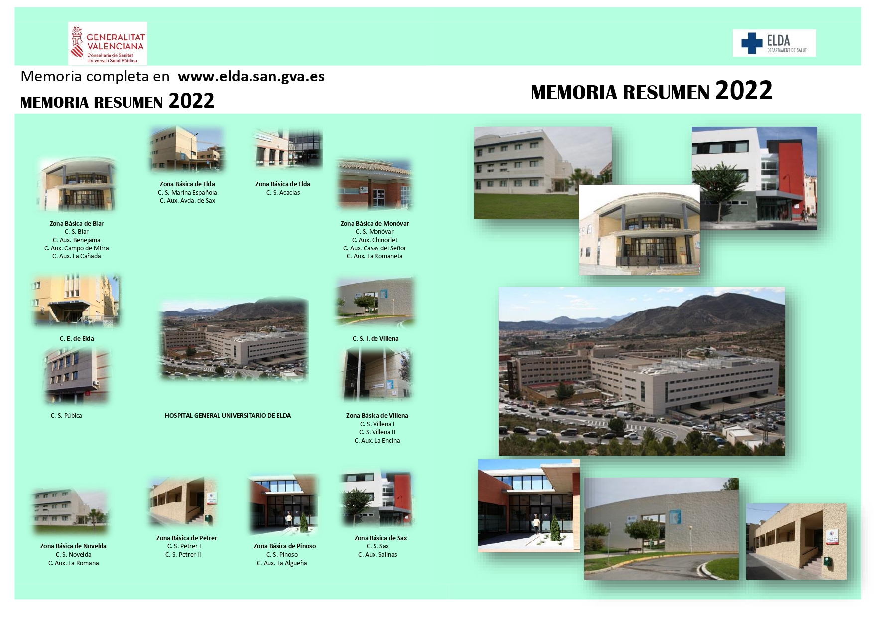 Elda (01.08.2023). El Departamento de Salud de Elda ha publicado en la web departamental su memoria anual 2022, en la que se puede acceder a toda la información relativa a dicho año. Como tradicionalmente viene realizando, el equipo de Docencia se ha encargado de la recopilación de los datos y realización de este documento que recoge toda la actividad del departamento, tanto asistencial como no asistencial.
