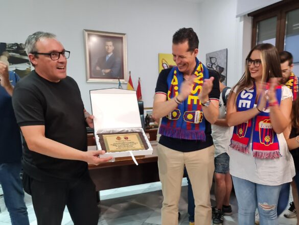 El presidente del club, Pascual Pérez, ha firmado en el Libro de Honor de la ciudad y los jugadores han saludado desde los balcones del Ayuntamiento a los cientos de aficionados que se han dado cita en la Plaza de la Constitución