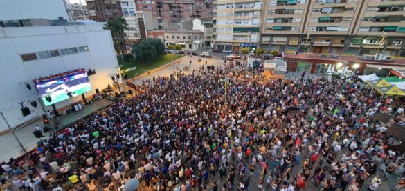 Otro de los puntos claves de la celebración del ascenso del Eldense fue la Plaza de la Ficia, donde el domingo por la tarde el Ayuntamiento de Elda instaló una fan zone con pantalla gigante, música y animación para aquellos aficionados que no habían podido acceder al Nuevo Pepico Amat para presenciar en directo el partido contra el Real Madrid Castilla.