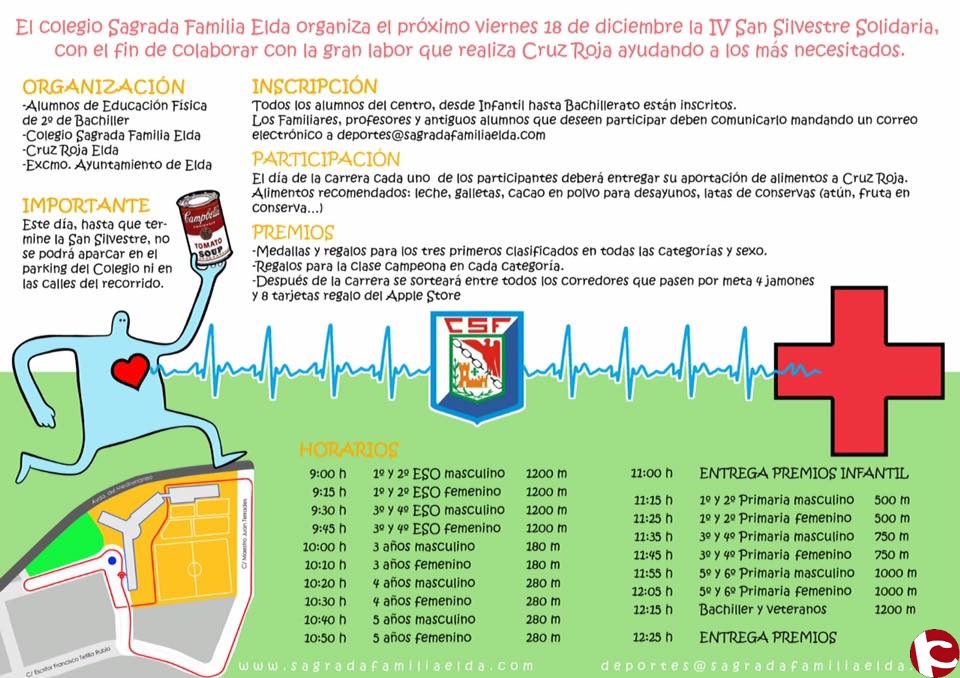 El viernes, en el colegio Sagrada Familia de Elda, alumnos pequeños, alumnos grandes, profesores, padres y familiares, antiguos alumnos, amigos sagrada,….disfrutaron juntos en un día con muchos momentos emotivos, lleno de solidaridad y deporte. Esto solo lo consigue la IV SAN SILVESTRE COLEGIO SAGRADA FAMILIA. Enhorabuena a los ganadores y al resto de participantes por hacer de este 18 de diciembre un día inolvidable. GRACIAS.