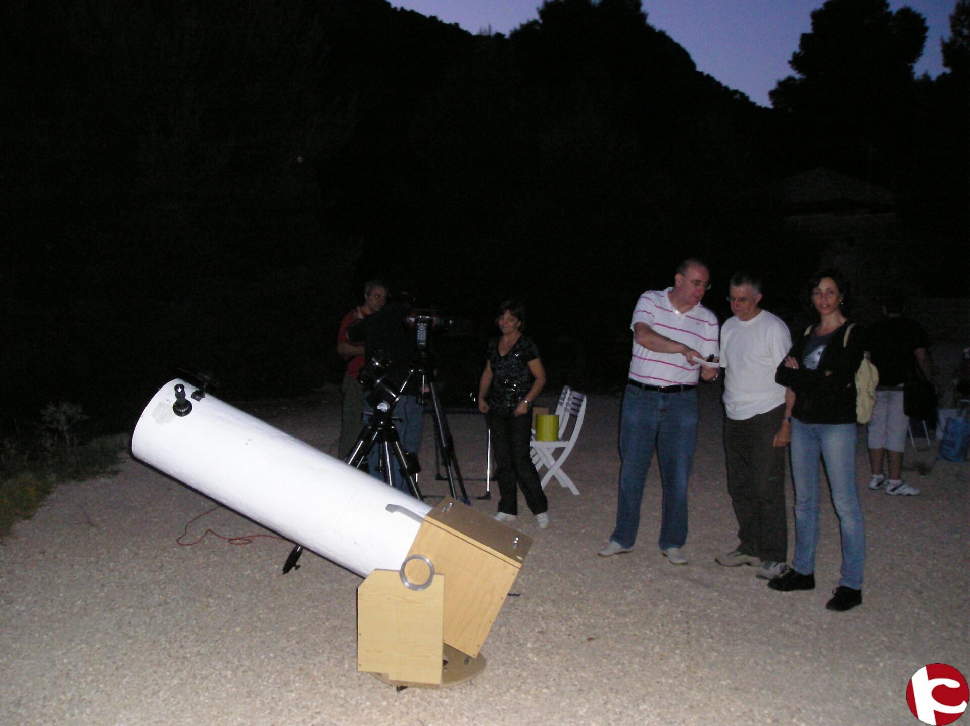 Nos reunimos unas 42 personas, en el área recreativa y montamos 3 telescopios: un reflector de 310 mm., que llevó Luis Enrique Gutierrez, Luis Miguel Azorín llevó su telescopio refractor de 80 mm, y Juan Manuel Marco llevó su 127 mm Schmidt Cassegrain.