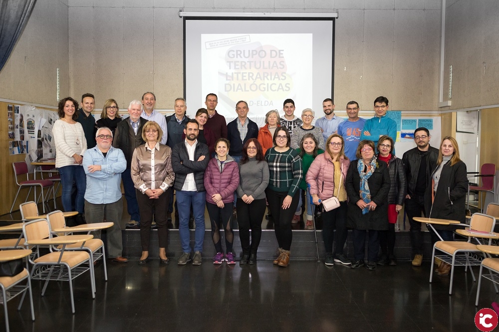Desde la coordinación del seminario de educación inclusiva A hombros de gigantes de Elda, con la subvención de la Obra social de Caixa Petrer y la colaboración de la Asociación de madres y padres de alumnado del CEIP Padre Manjón, se inicia una primera serie de tertulias literarias dialógicas .