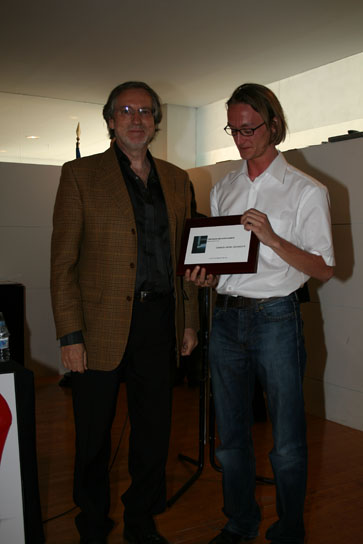 Charles Henry Sommelette, ganador del premio Ciudad de Elda, desplazado expresamente desde Bélgica, recogió el mismo de manos del Concejal de Cultura.