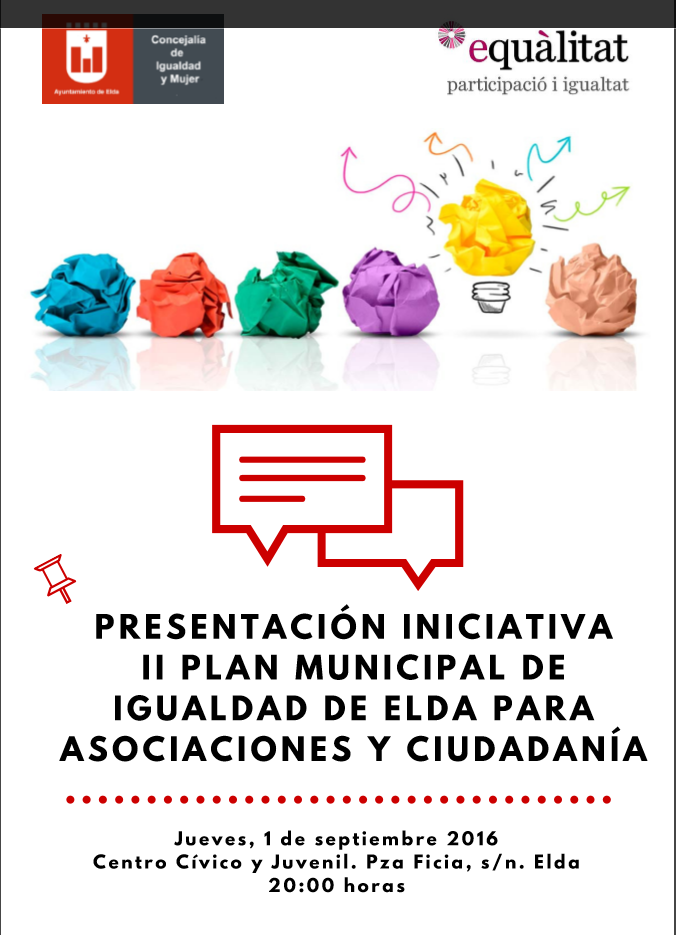 Se presenta el II Plan Municipal de Igualdad de Elda el próximo jueves 1 de septiembre