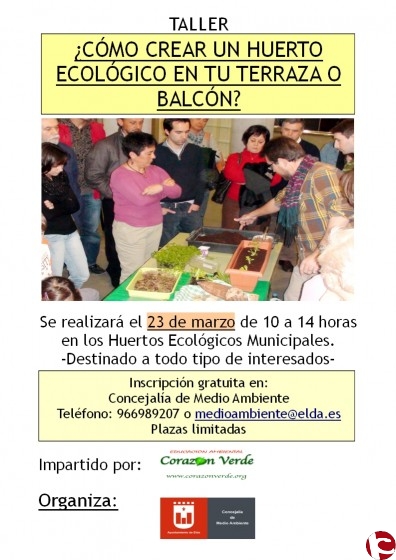 Taller ¿Cómo crear un huerto ecológico en tu terraza o balcón?. Se realizará el 23 de marzo por la mañana