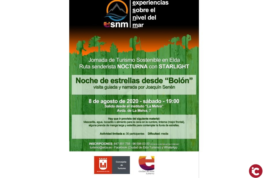 El plazo de inscripción se abre mañana jueves, 30 de julio, a las 8 de la mañana. Para tomar parte en la ruta es necesario inscribirse previamente y de manera gratuita en la Oficina de Turismo, a través del correo turismo@elda.es o por teléfono, en horario de mañana, llamando al 647 851 758. También es posible inscribirse a través de la página de Facebook de la Concejalía de Turismo.
