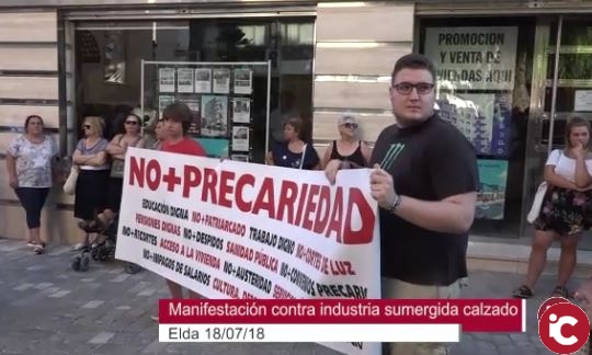 Cerca de un centenar de personas se concentraron a las puertas del Teatro Castelar ayer para visibilizar la situación de precariedad de muchos trabajadores del sector zapatero, aprovechando la celebración de la Gala de la Mejor Calzada.