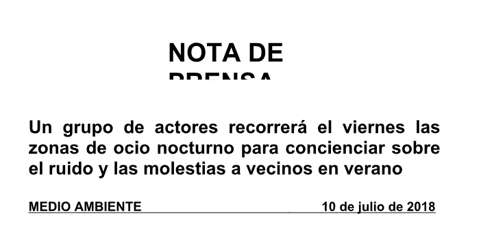 realizarán una acción de marketing de calle con el objetivo de exagerar una situación, en tono de humor, para representar el problema que representa para muchos vecinos el ruido de las noches de terrazas y locales de ocio. Por eso, la concejala quiere que todos tomemos conciencia porque se puede disfrutar del verano y de la calle sin por ello tener que molestar a quienes están en sus casas y prefieren dormir.