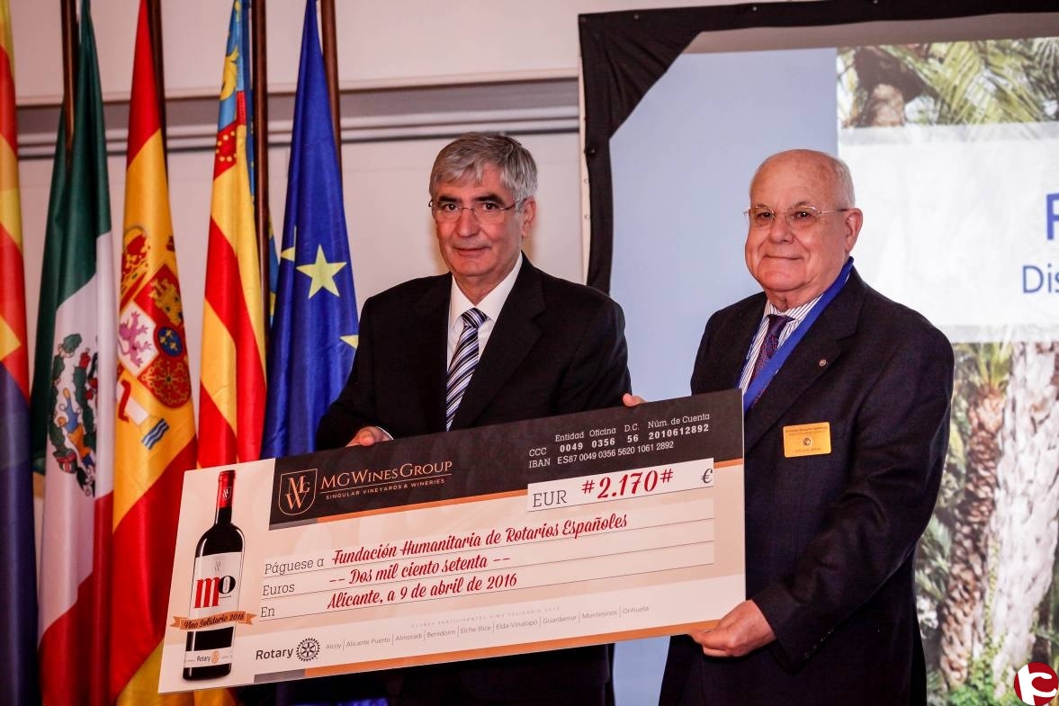 La recaudación procede del porcentaje que MGWines Group ha destinado por la venta de cada botella del vino MO Salinas, elaborado por la bodega de su propiedad Sierra Salinas, y se enmarca dentro del proyecto Vino Solidario Rotario.