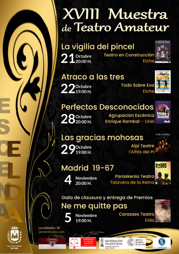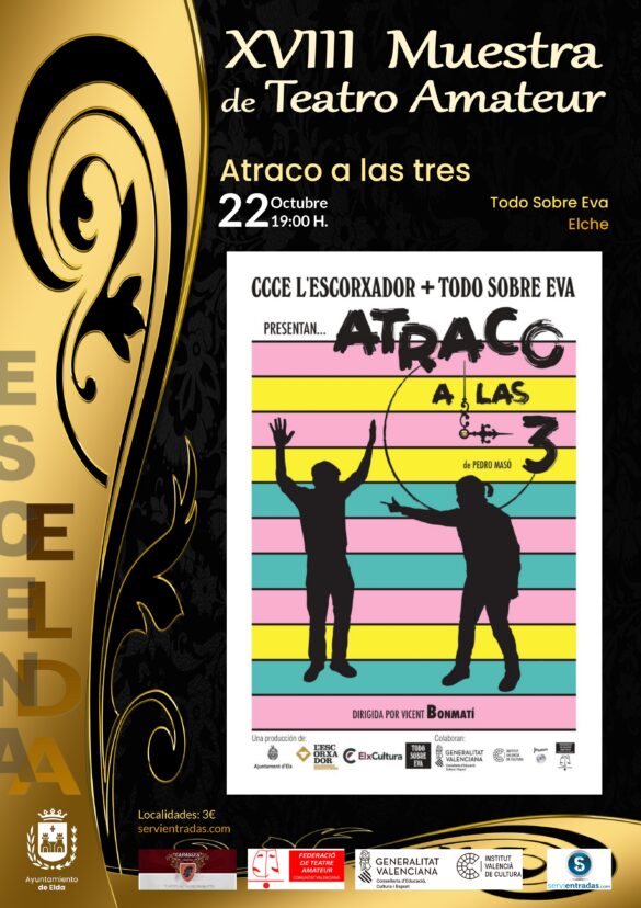• 22 de octubre, ‘Atraco a las 3′, de la compañía Todo sobre Eva (Elche). Una divertida comedia que parte de un guion cinematográfico de Pedro Masó estrenada a principios de los años 60