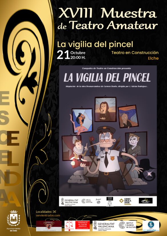 • 21 de octubre, ‘La vigilia del pincel’, de la compañía Teatro en Construcción (Elche). Se trata de una comedia, con algunos tintes dramáticos, en la que, además de la propia palabra teatral, se entremezclan otras disciplinas artísticas como la música o la danza.
