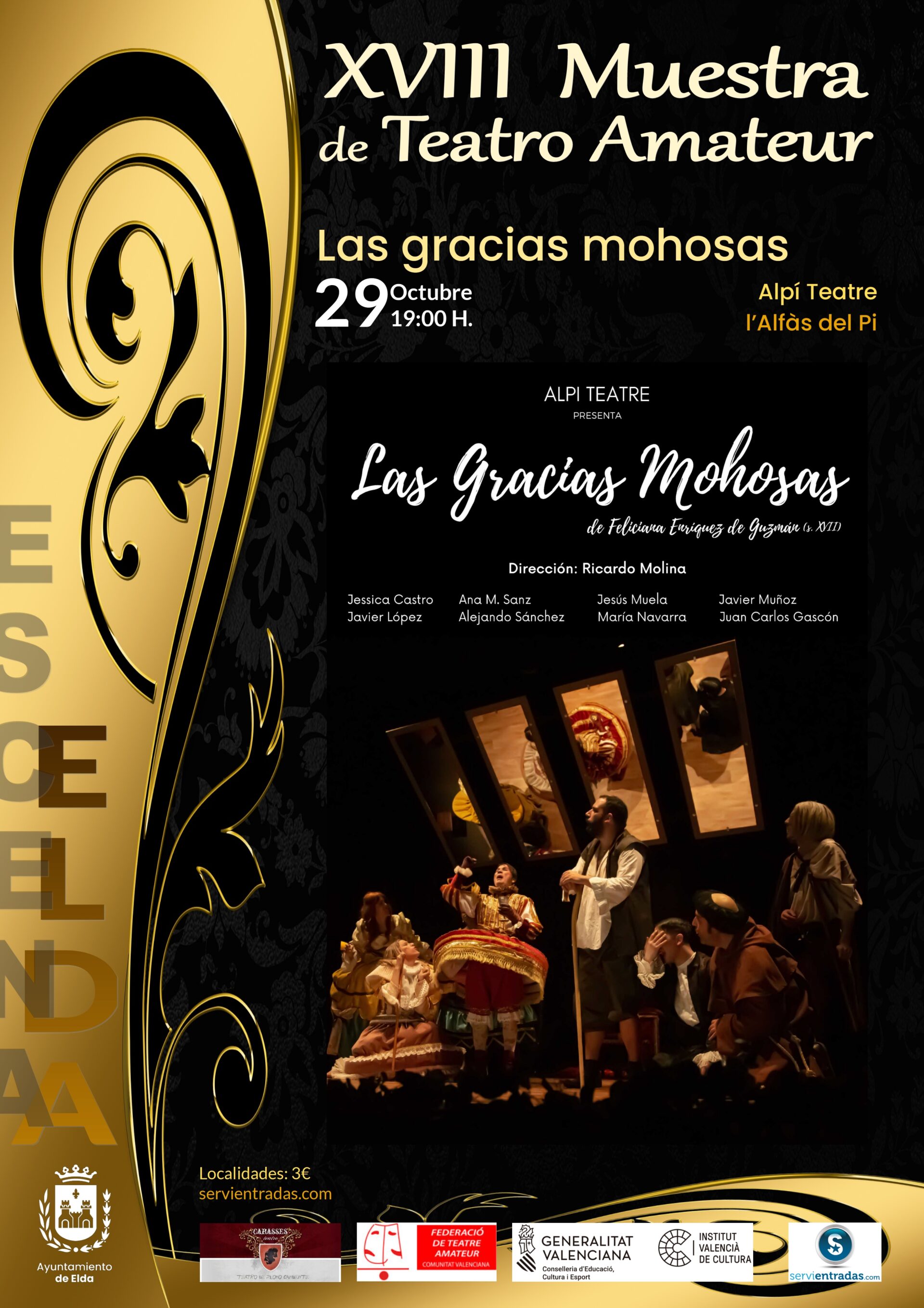 • 29 de octubre, ‘Las graciosas mohosas‘, de Alpi Teatro (Alfaz del Pi). Una obra de teatro clásico, del siglo XVII y escrita por una mujer: Feliciana Enriquez de Guzmán.