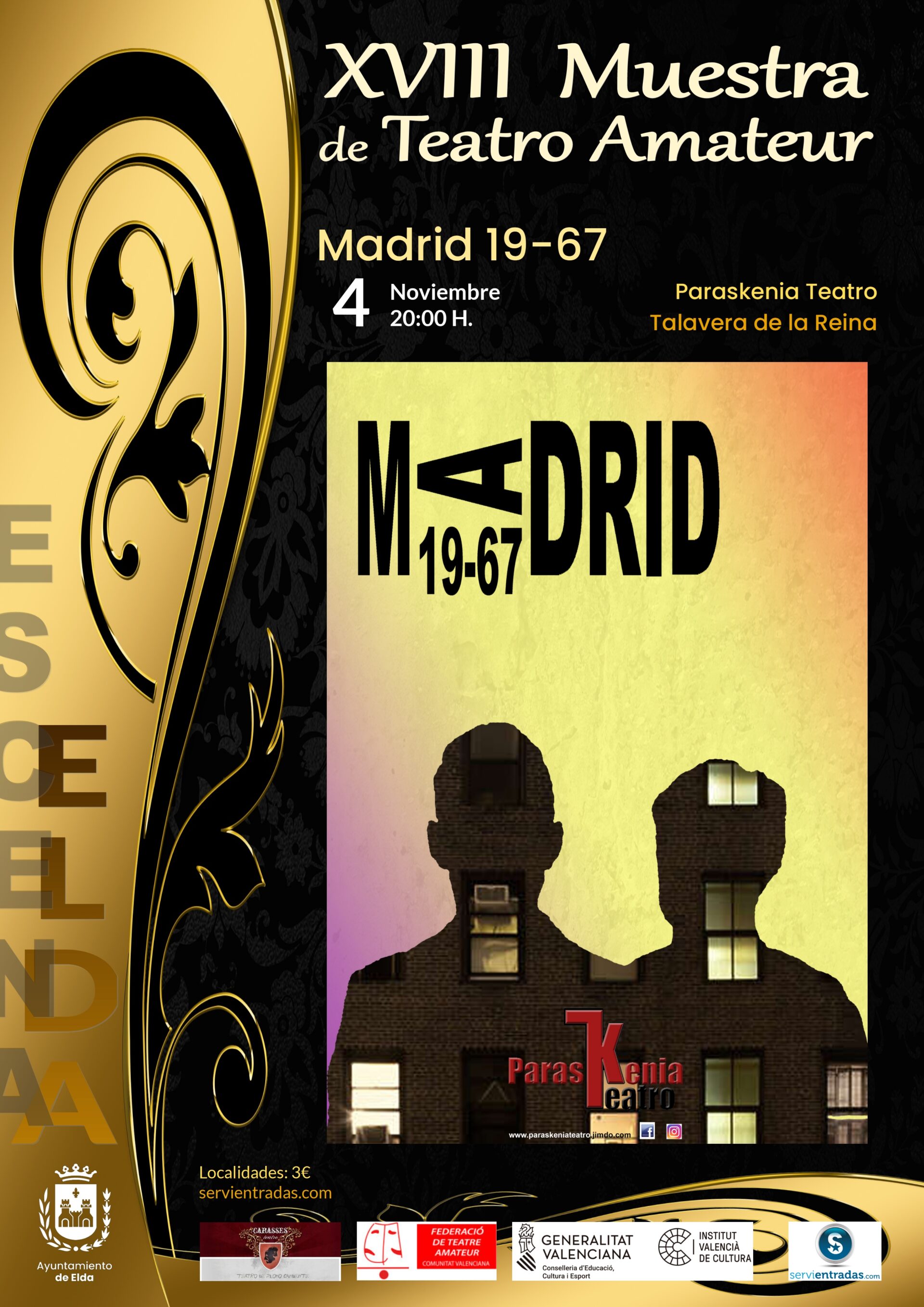 • 4 de noviembre, ‘Madrid 19/67’, de Paraskenia Teatro (Talavera de la Reina). Una abuela y su nieto se reencuentran después de largos años y a partir de ese encuentro irán aflorando recuerdos en los que la memoria se activa y, también, los sentimientos.
