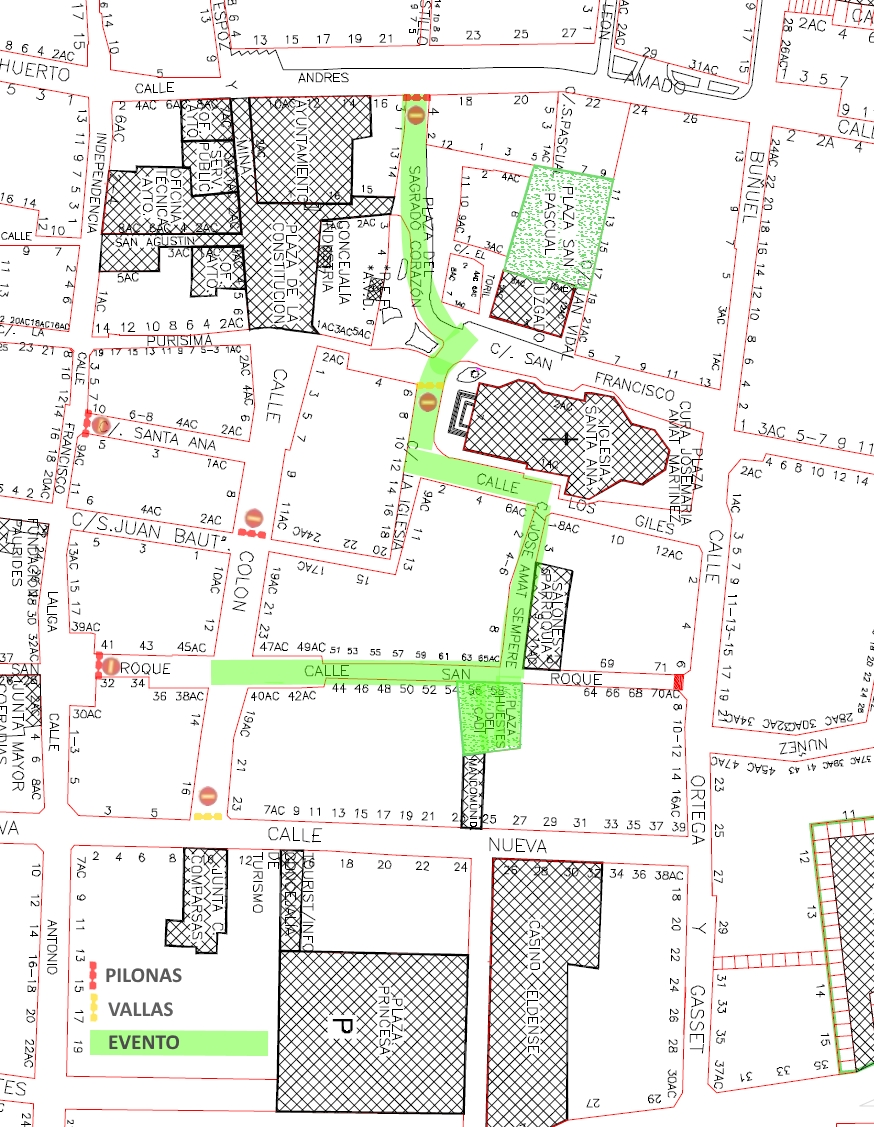 Sirva el presente para ponerles en conocimiento que, por la celebración de actuación teatral en la calle, autorizado desde la Concejalía de Cultura, entre las 21:30 horas del día de hoy, 07 de julio y las 00:30 horas del día 08 de julio del presente año, van a estar cortadas al tráfico de vehículos las calles que constan el plano que consta en el presente.