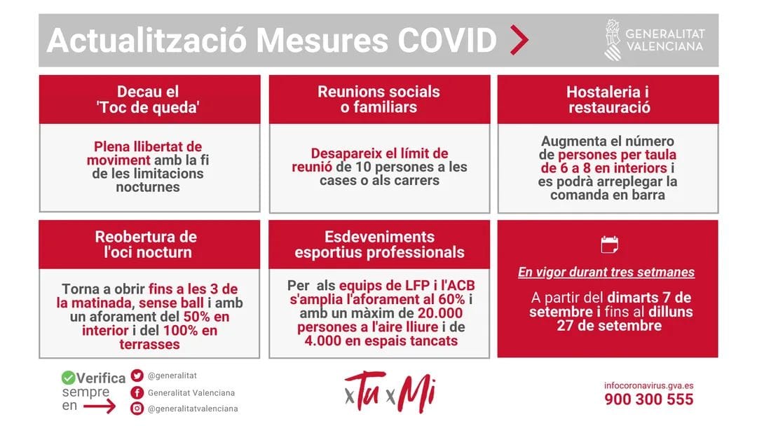 Aquest marc de mesures estarà en vigor durant tres setmanes, des del 7 fins al 27 de setembre.