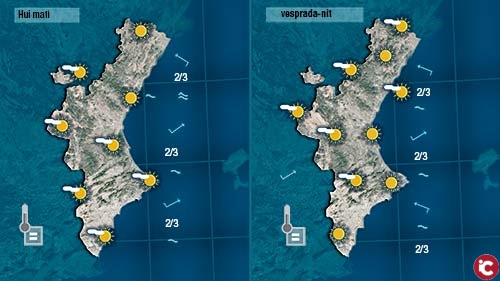 Hui tot continuarà per un estil. El vent bufarà fluix, al cel només tindrem núvols decoratius i les temperatures no patiran grans canvis.