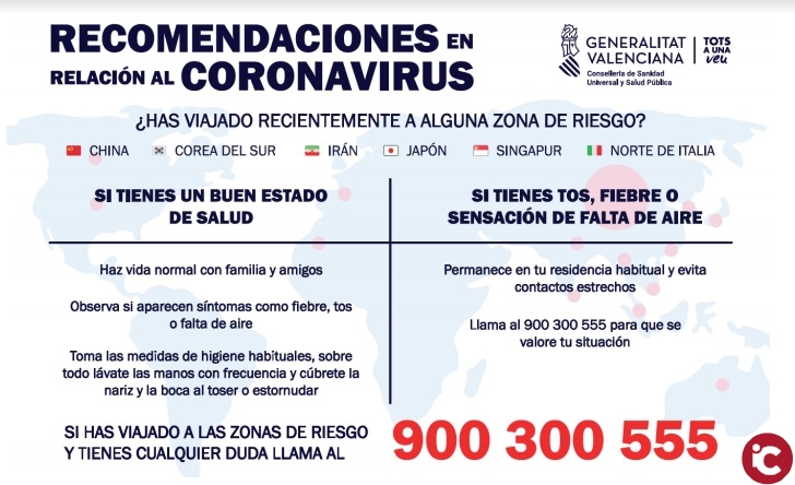 Esta iniciativa forma parte de la campaña informativa que puso en marcha la Conselleria de Sanidad en el momento de saltar la alerta del primer caso de coronavirus. Toda la información está disponible en la página web consultar aquí.