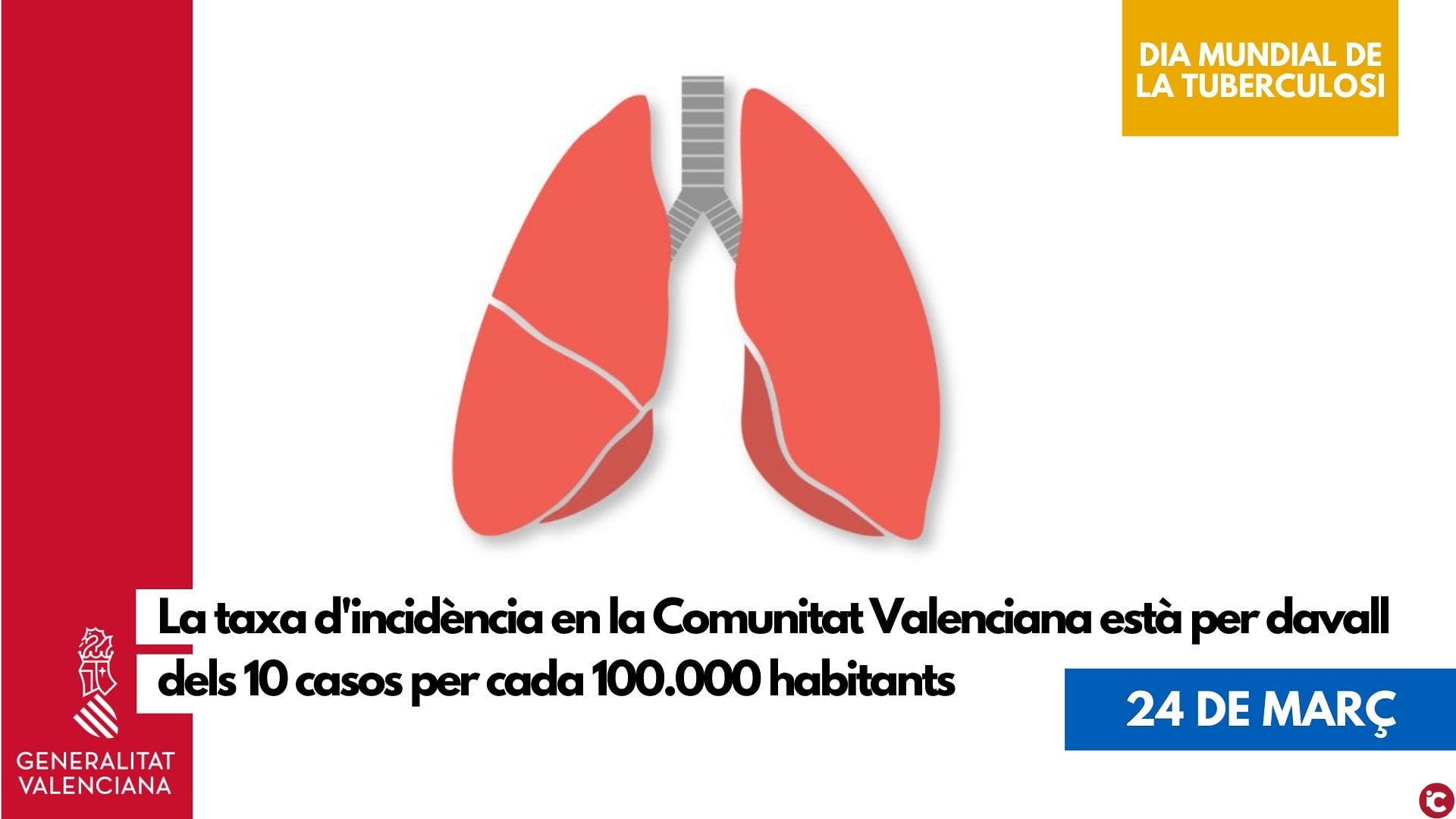 En la Comunitat Valenciana, la tasa de incidencia de tuberculosis sigue una evolución descendente y se encuentra por debajo de los 10 casos por cada 100.000 habitantes, muy similar a la que presentan países del entorno y con baja incidencia.