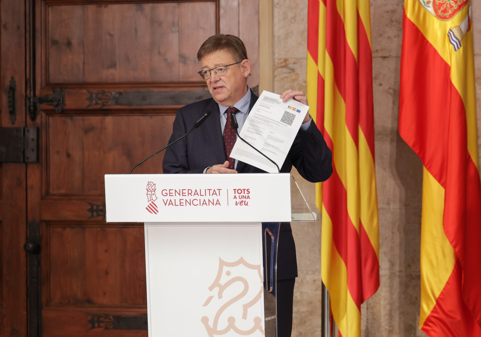 Ximo Puig solicita al TSJCV el pasaporte COVID obligatorio para entrar en restaurantes y locales de ocio con aforo superior a 50 personas, así como para visitar hospitales y residencias