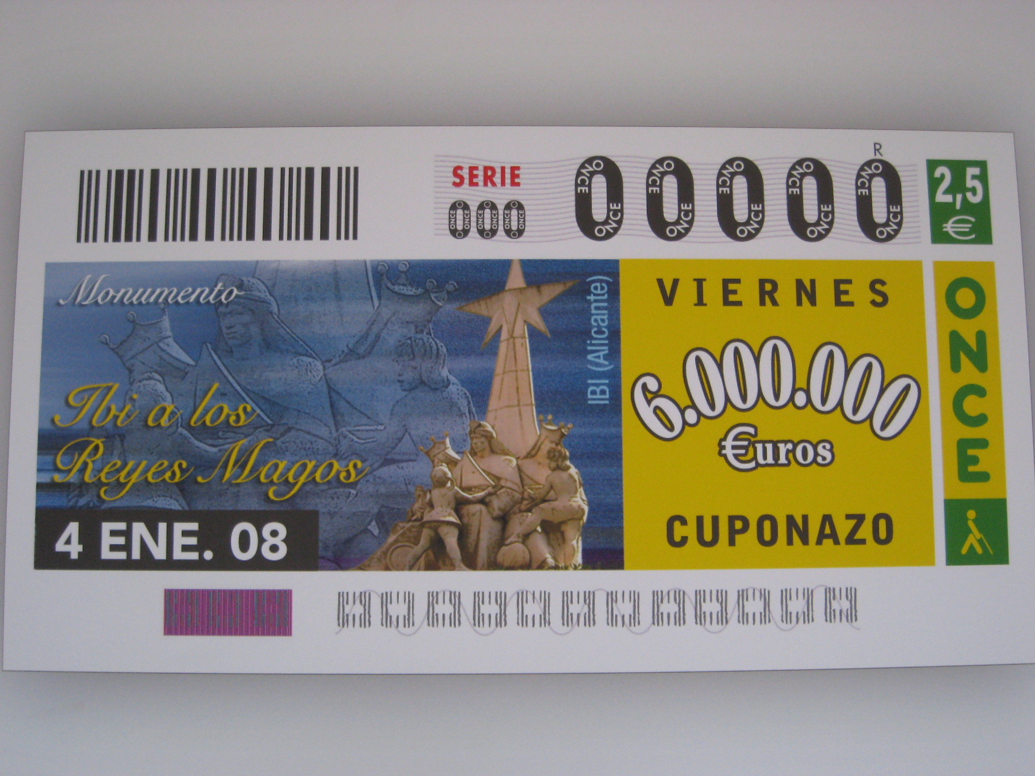 La organización española realiza el acto de impresión de los cupones haciendo uso de una imagen determinada, en este caso, del monumento de los Reyes Magos de Ibi, de forma altruista, ya que de esta manera agradecen a la sociedad la cooperación y colaboración con la entidad en pro de la ayuda hacia las personas con discapacidad visual en España. Asimismo, el propio Ayuntamiento de Ibi tuvo su propio cupón el día 9 de abril del pasado año.