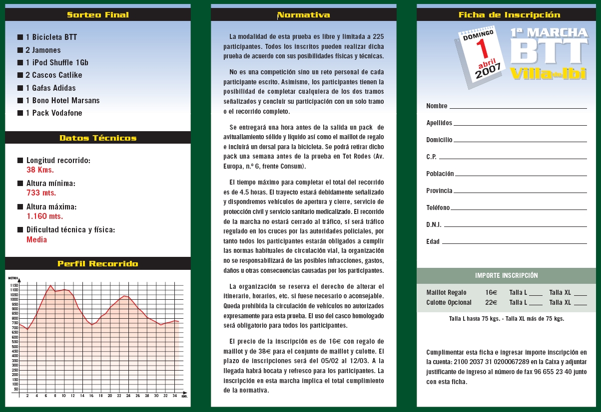 e incluirá un dorsal para la bicicleta. Se podrá retirar dicho