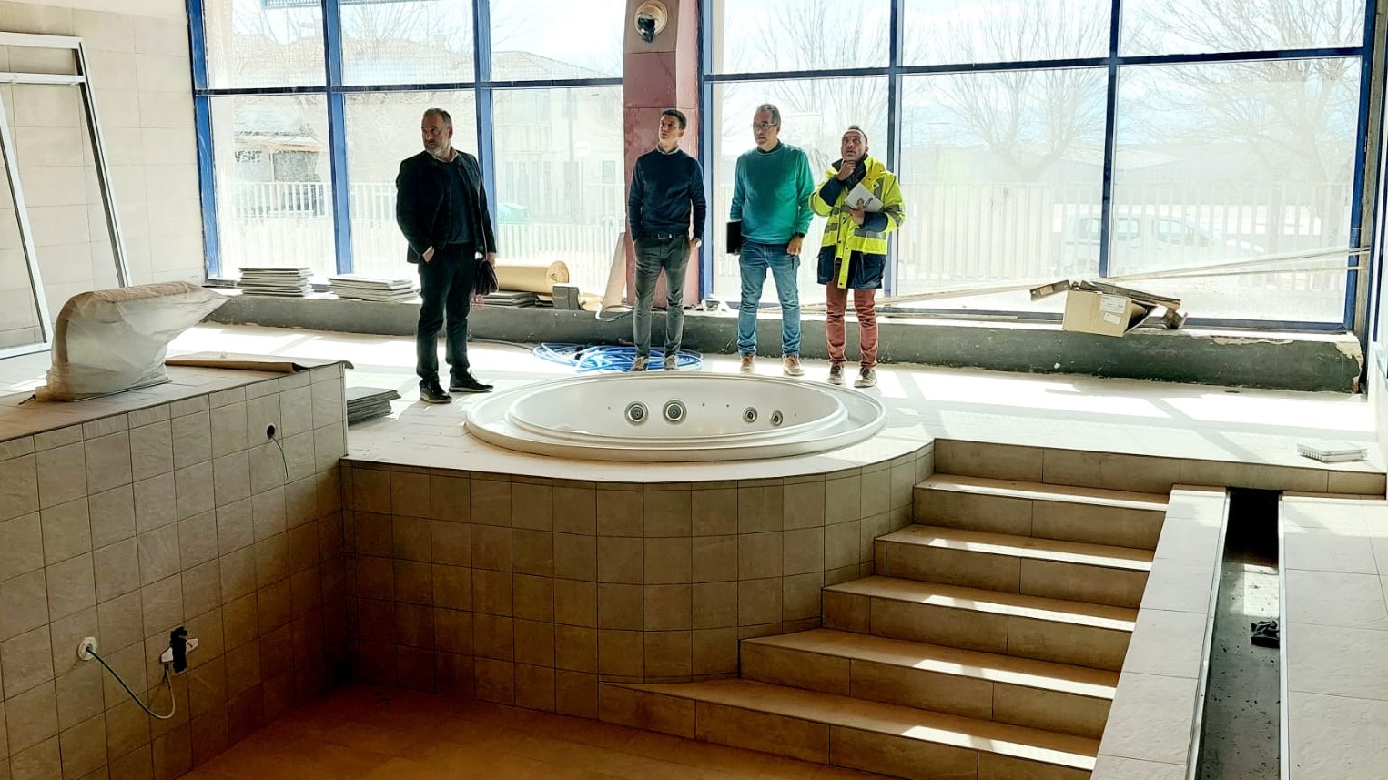 La empresa encargada de las obras, Nerco Infraestructuras, SL está ultimando ya los acabados de lo que será el nuevo Balneario municipal, ubicado en las instalaciones de la piscina cubierta. Las labores han consistido en la actuación de la sala de  187,15 m²  que, en su momento, quedó preparada para tal fin y que contaba con la estructura realizada y la formación de los vasos de las piscinas. Los revestimiento se están finalizando con enfocado de cemento chapado de placas de hasta 3 m de altura y la aplicación de la pintura y los tratamientos pertinentes.
