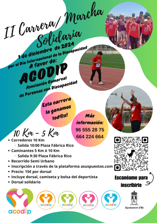 El próximo 1 de Diciembre (domingo), con motivo del «DÍA INTERNACIONAL DE LA DISCAPACIDAD», celebraremos la II CARRERA SOLIDARIA A FAVOR DE ACODIP