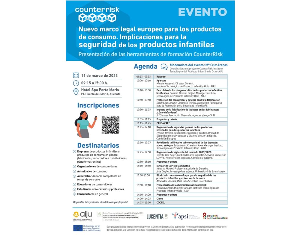 - En el evento se darán a conocer las herramientas formativas CounterRisk, desarrolladas por AIJU en colaboración con otras entidades europeas