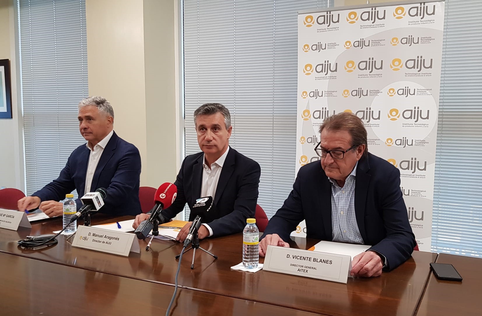 A la firma del convenio han asistido Manuel Aragonés, director general de AIJU; Vicente Blanes, director general de AITEX y José María García, director del Campus Valencia ESIC.