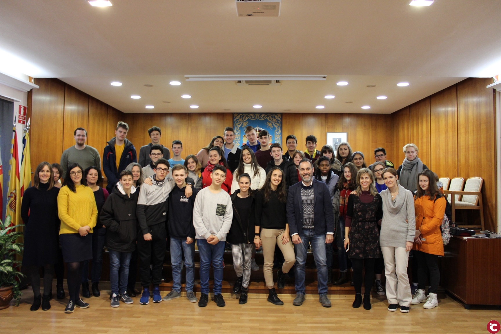 Un grupo de 17 alumnos y 6 profesoras que están realizando el programa Erasmus + “Mobe: be a learning hero” con estudiantes del colegio Salesiano de Ibi han visitado esta mañana el ayuntamiento local, donde el alcalde, Rafael Serralta, les ha organizado una pequeña recepción.