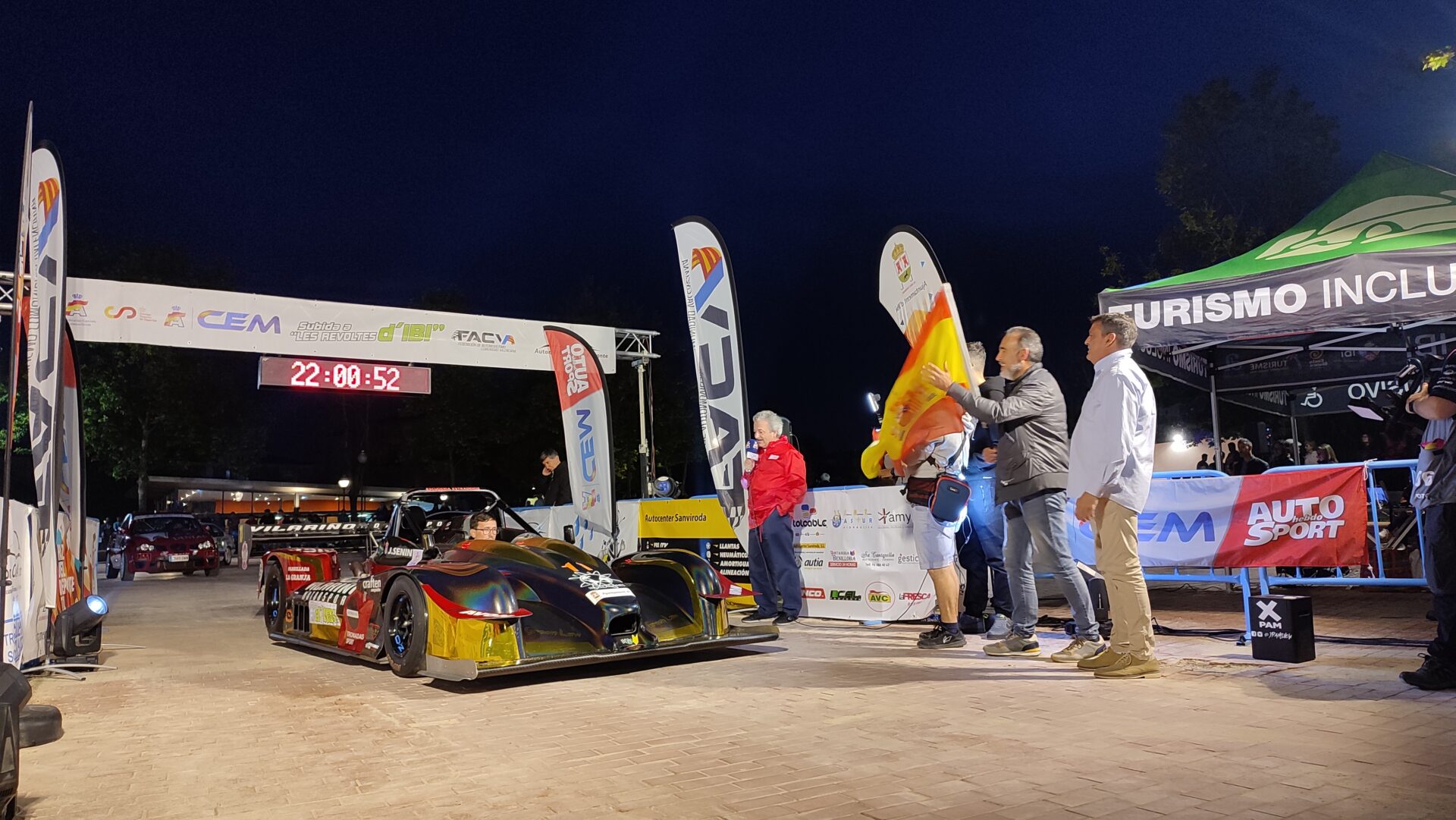 Rafael Serralta, Alcalde de Ibi, y Pedro Martínez, presidente del Automóvil Club de Alicante, fueron los encargados de dar la salida a los primeros participantes en una vistosa ceremonia que incluía iluminación, fuego y humo. Uno a uno, fueron tomando la salida los cuarenta y cuatro participantes inscritos que mañana, a partir de las 11 de la mañana, se batirán en la carretera en una jornada que promete espectáculo ya que, para sorpresa de todos tanto por la zona como por la fecha, la lluvia podría hacer acto de presencia a lo largo de la jornada.