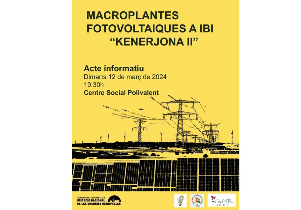 ACTE INFORMATIU PER A DONAR A CONÉIXER LES AL·LEGACIONS AL PROJECTE DE CONSTRUCCIÓ DE LA PLANTA “KENERJONA II” D’IBI