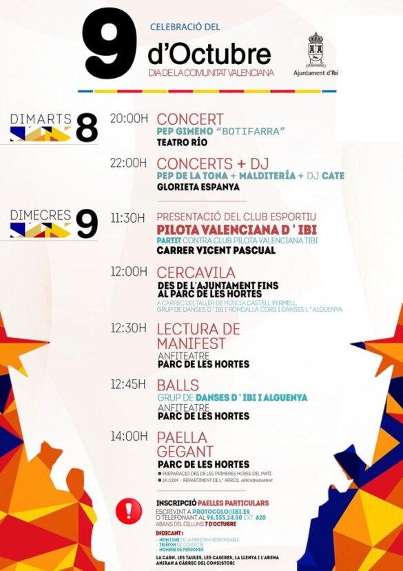 Hui, 9 d´Octubre, la lectura del Manifest, música, balls, paelles i presentació del ‘Club Esportiu Pilota Valenciana d’Ibi’, han segut les activitats que s´han dut a terme per a celebrar el Dia de la Comunitat Valenciana.