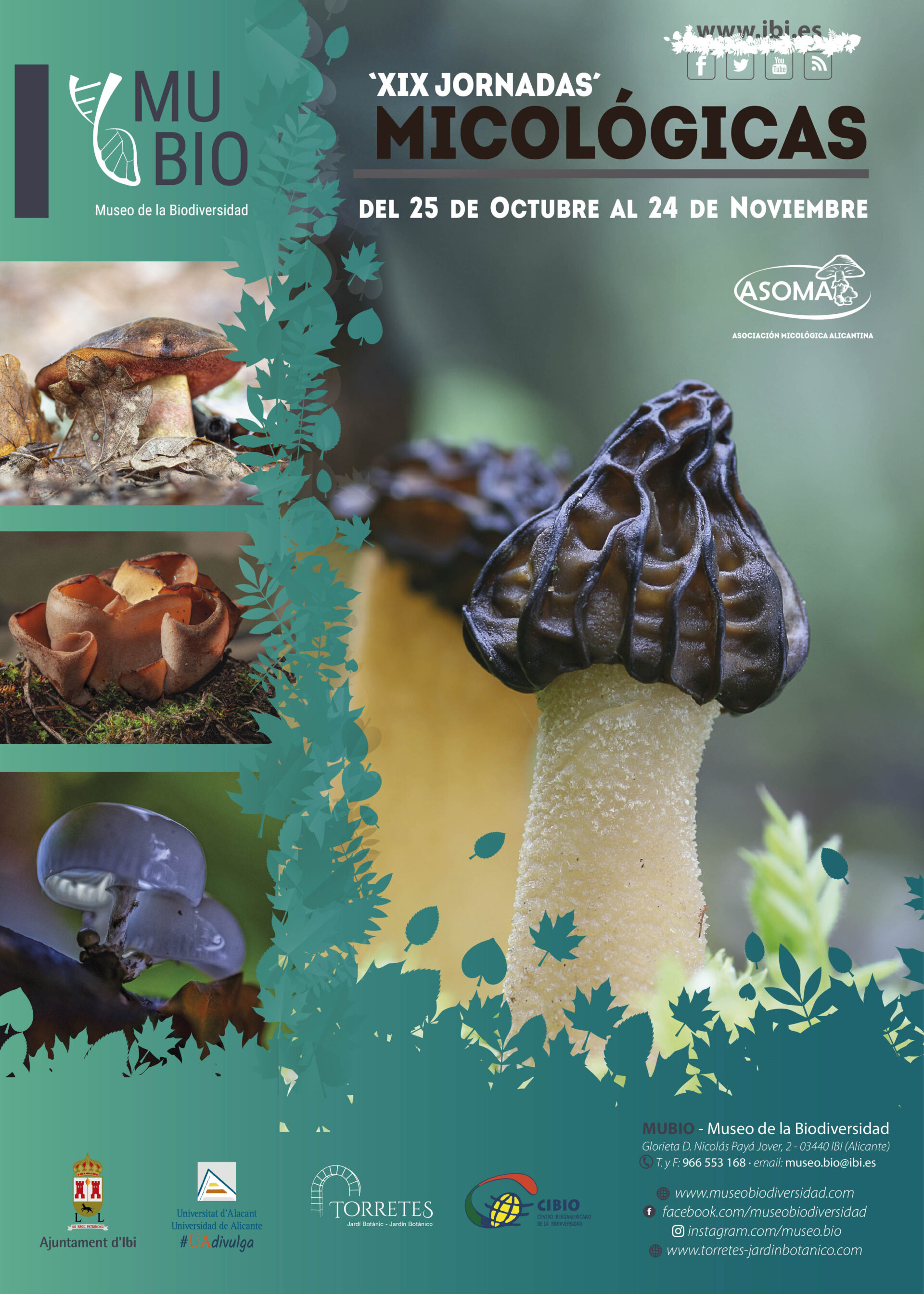 Les Jornades Micològiques són un esdeveniment ja consolidat a Ibi, que compte, any rere any, amb una major participació. I han sigut impulsades pel Museu de la Biodiversitat -MUBIO- i l’Associació Micològica Alacantina -APUNTA-, en col·laboració amb l’Ajuntament d’Ibi, el Jardí Botànic de l’Estació Biològica de Torretes, la Universitat d’Alacant i el Centre Iberoamericà de la Biodiversitat-CIBIO-.