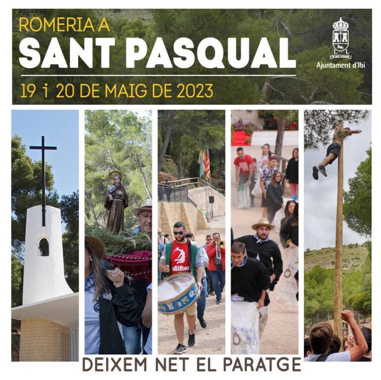 Los próximos 19 y 20 de mayo, Ibi celebrará su tradicional Romería a San Pascual con una serie de actividades a las que se invita a todo el pueblo de Ibi y vecinos de otras localidades a participar. Los actos comienzan el viernes, 19 de mayo, a las 19:00 h, con un pasacalles con la Unión Musical de Ibi y un vino de honor en el barrio de San Pascual, para proceder desde allí a la marcha nocturna hasta la ermita, ubicada en el Paraje de San Pascual, donde habrá servicio de bar y se realizará la tradicional cena de Romería.