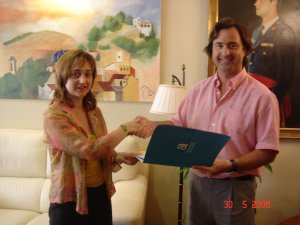 El Gerente del Área de Medio Ambiente de la Diputación de Alicante, D. Alejandro de la Vega ha entregado hoy a la alcaldesa de Ibi, Mayte Parra, el acta administrativa de entrega de la obra del ecoparque de Ibi. Está ubicado en la calle Guadalajara, número 3, en el nuevo polígono industrial Alfaç III, junto al Punto Limpio, al que sustituirá en breve.