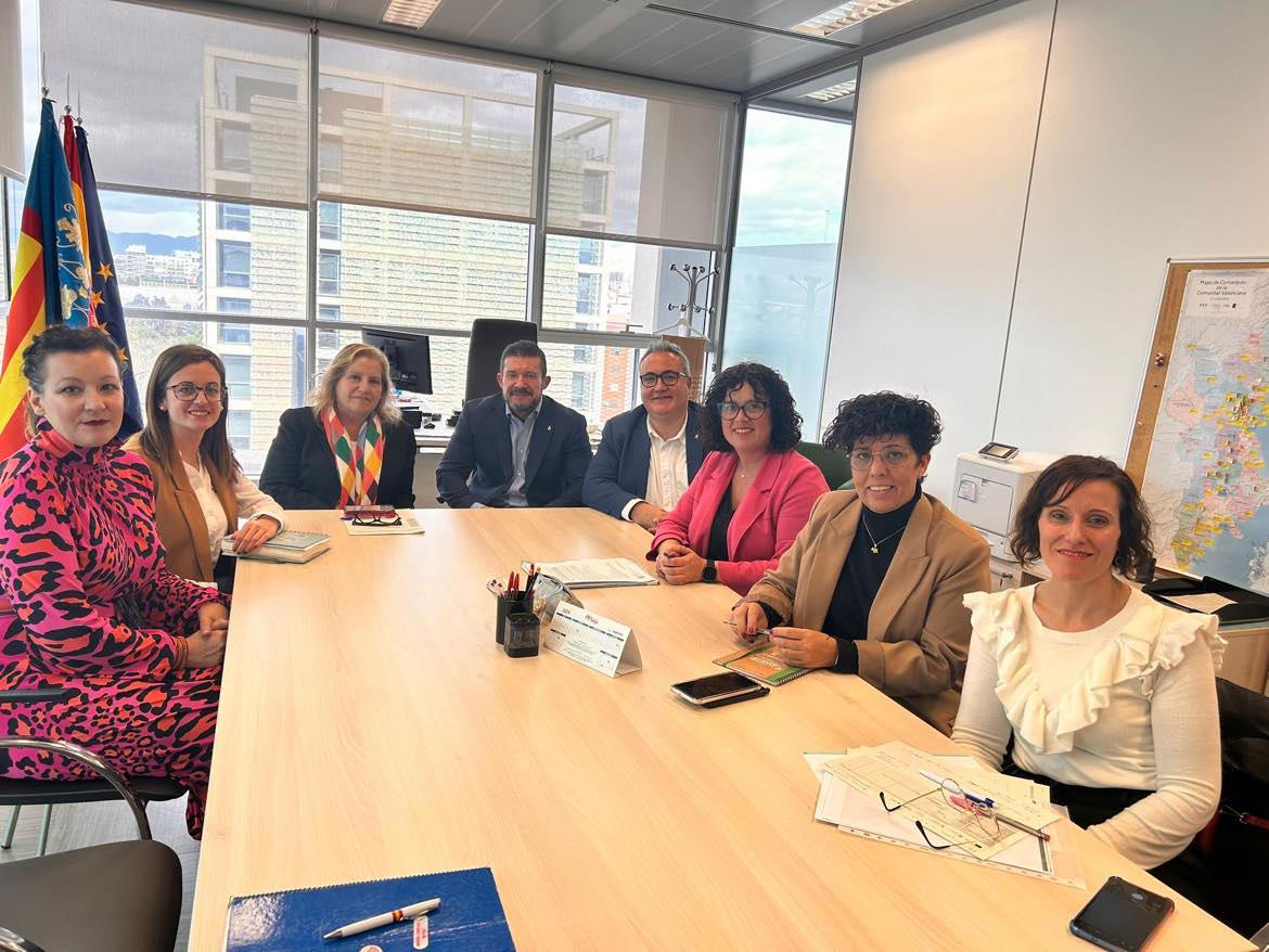 La comitiva encabezada por el alcalde de Ibi, Sergio Carrasco, la vicealcaldesa, Aitana Gandia, y la teniente de alcalde del área de Servicios Sociales, Igualdad y Mayores, Montse Agulló, acompañados por los portavoces de todos los Grupos Políticos con representación municipal, se reunió con el secretario autonómico del Sistema Sociosanitario, Emilio Argüeso, y la Directora general de Infraestructuras Sociosanitarias, Mª Àngels Ramón-Llin. El primer edil presentaba de primera mano el plan de trabajo municipal y la previsión de plazos que encajen de manera efectiva con el cronograma realizado por la Conselleria.