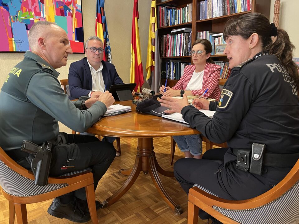 Aquest dissabte, 11 de maig, se celebra a Ibi el dia de “l’Avís de festes” i, per a això, l’alcalde, delegat al seu torn de l’àrea de Seguretat Ciutadana, Sergio Carrasco, acompanyat per la vicealcaldessa. delegada de l’àrea de Festes, Aitana Gandia, es reunien ahir amb la Cap de la Policia Local i el Comandant de Lloc de la Guàrdia Civil per a coordinar i establir un Pla de Seguretat Ciutadana que garantisca la total seguretat de tots els ciutadans, visitants i la pròpia localitat.