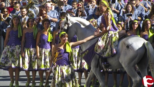 A las once en punto de la mañana comenzaba el desfile de las siete comparsas del bando cristiano. Los Maseros, comparsa de Capitanía, entusiasmaron al numeroso público que llenó las calles con un boato muy luminoso, inspirado en la huerta valenciana. El Capitán, Ricardo Guillem, y su hija la abanderada Marta Guillem, contagiaron su entusiasmo, arrancando numerosos aplausos.
