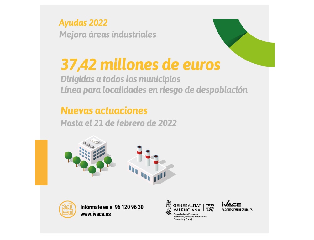 El plazo de presentación de solicitudes de los proyectos para los ayuntamientos de la Foia de Castalla finaliza el 21 de febrero. La convocatoria del IVACE contempla la subvención de hasta el 100% de los proyectos de inversión para la mejora, modernización y dotación de infraestructuras y servicios en los polígonos, áreas industriales y enclaves tecnológicos. Las subvenciones son para proyectos y/o actuaciones anuales, ejecutables en el ejercicio 2022, es decir, los proyectos podrán haberse iniciado antes de la presentación de la solicitud de ayuda, pero sólo serán subvencionables los trabajos realizados durante la totalidad del 2022.