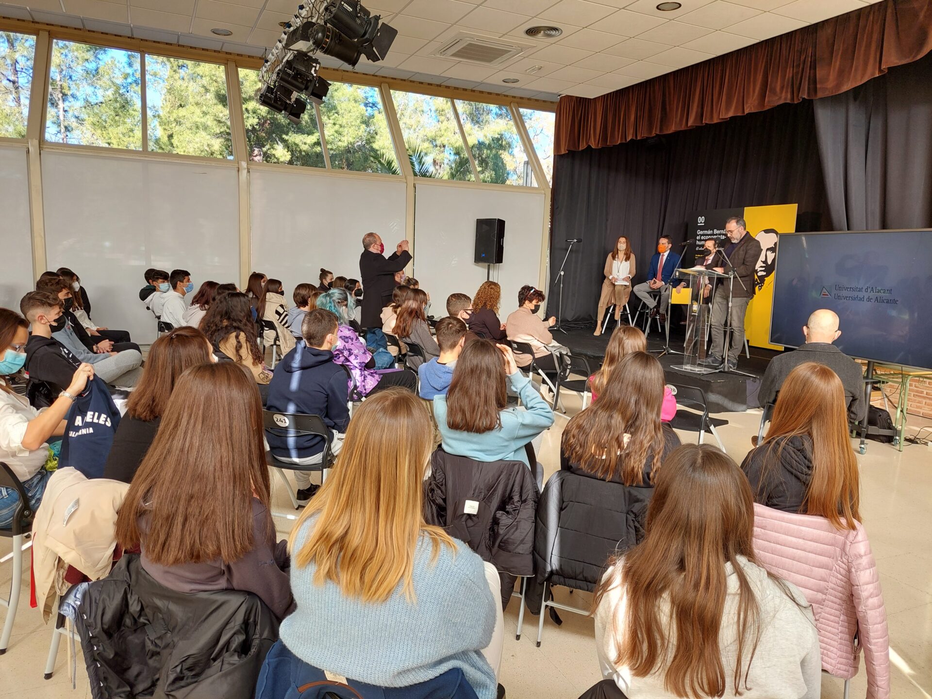 Además, también ha estado presente un grupo de estudiantes de 4o de la ESO y 1o de Bachiller del IES Fray Ignacio Barrachina de Ibi con el objetivo de conocer de cerca la figura de tal ilustre alicantino y que, además, han podido charlar con el profesor de la Facultad de Ciencias Económicas y Empresariales de la UA, Juan Ángel Zabalza Arbizu sobre economía.