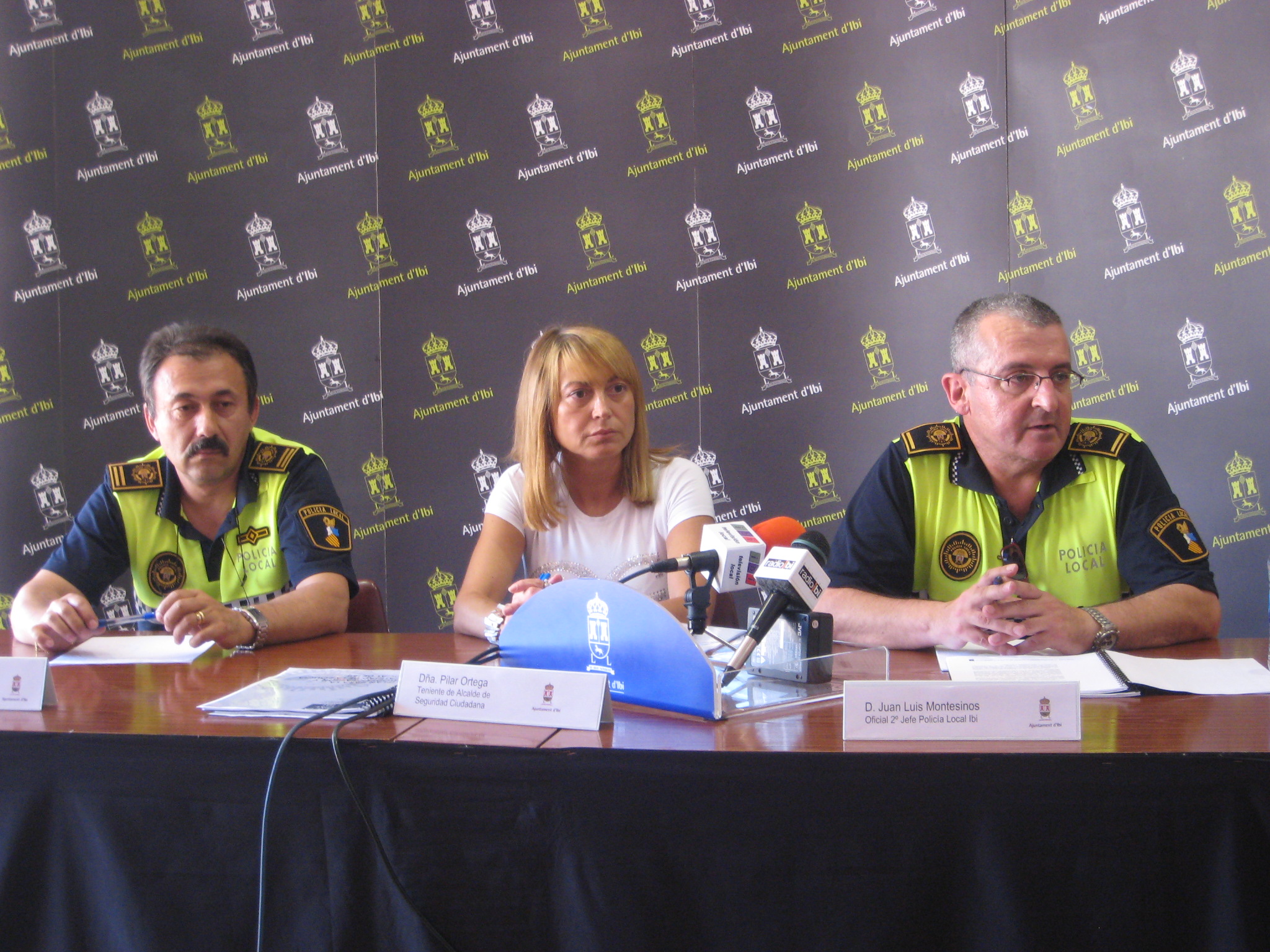 La Teniente de Alcalde de Seguridad Ciudadana del Ayuntamiento de Ibi, Pilar Ortega, en compañía del Inspector Jefe, Diego Triviño y el Oficial 2º Jefe de la Policía Local de Ibi, Juan Luis Montesinos, han presentado esta mañana en rueda de prensa, el Plan de Modernización y Calidad de la Policía Local del municipio.
